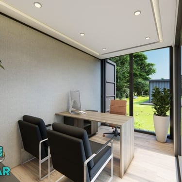 Esta oficina modular representa una solución moderna, sustentable y adaptable para entornos laborales que requieren versatilidad, privacidad y eficiencia en espacios compactos.