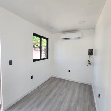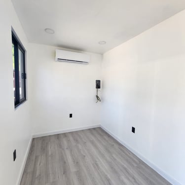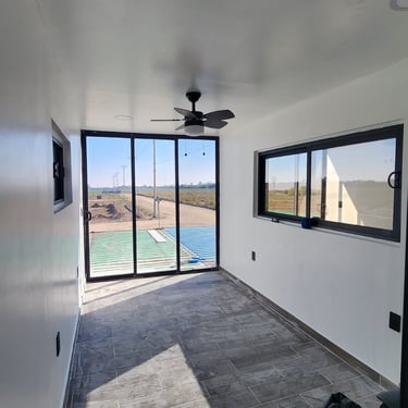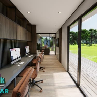 Esta oficina fue diseñada dentro de un contenedor de 20 pies, aprovechando cada espacio de forma practica y eficiente. El interior se planeó para ofrecer comodidad y buen desempeño: se instaló aislamiento térmico para mantener una temperatura estable, iluminación LED distribuida para un ambiente claro y uniforme, y una instalación eléctrica pensada en equipo de oficina.